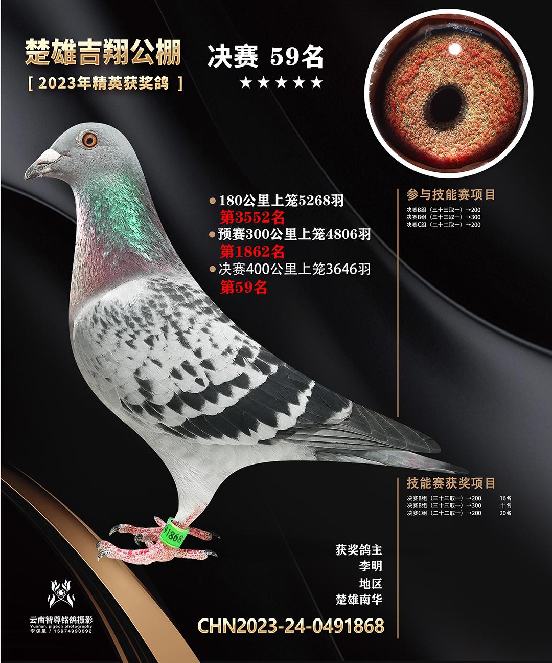 楚雄吉翔养殖有限公司(秋棚)2023年精英获奖鸽