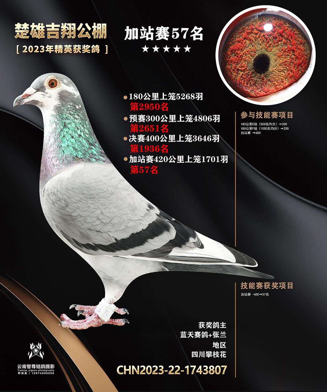 | 序号 | 标题 | 名次 | 归巢时间 | 分速 | 归巢羽数 |