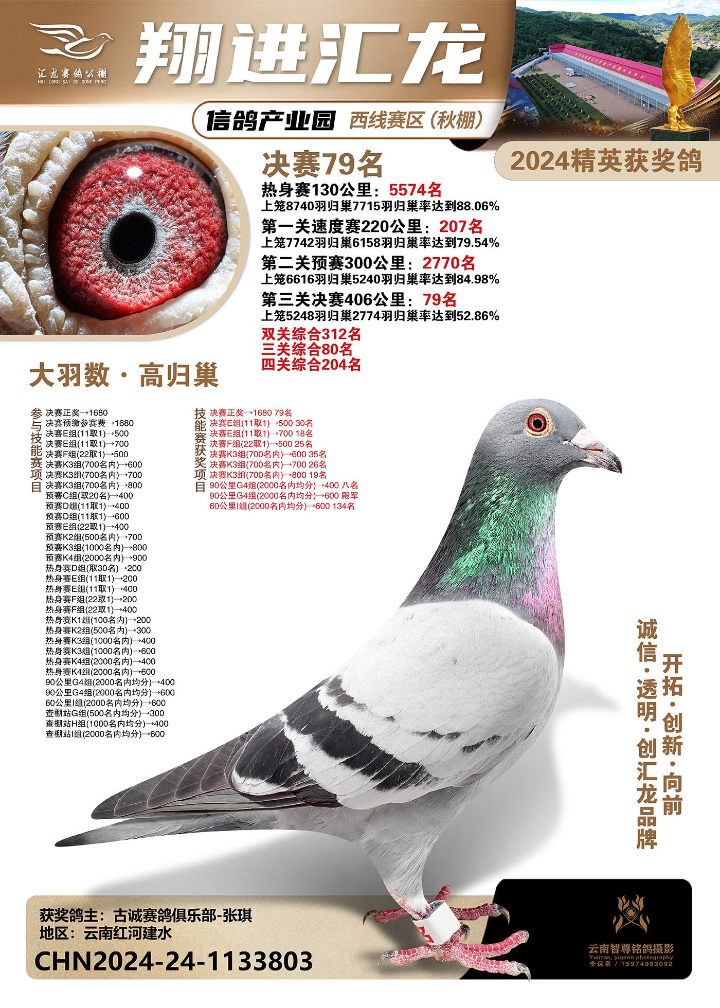| 鸽主姓名 | 古诚赛鸽俱乐部-张琪 |