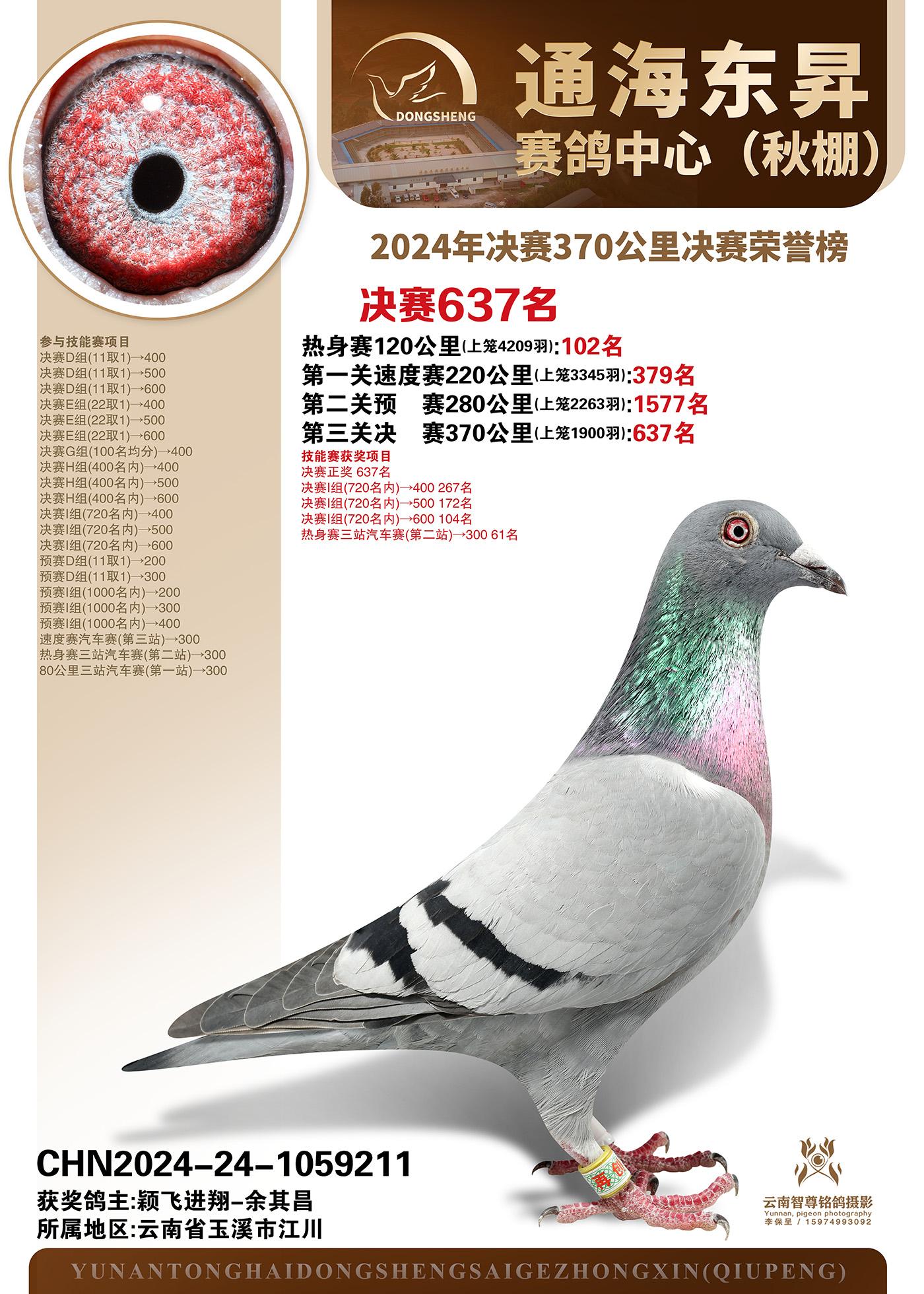 云南通海东昇赛鸽中心-2024年决赛370公里决赛获奖鸽欣赏