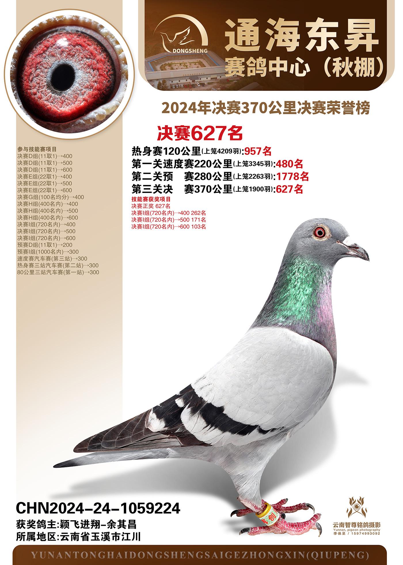 云南通海东昇赛鸽中心-2024年决赛370公里决赛获奖鸽欣赏
