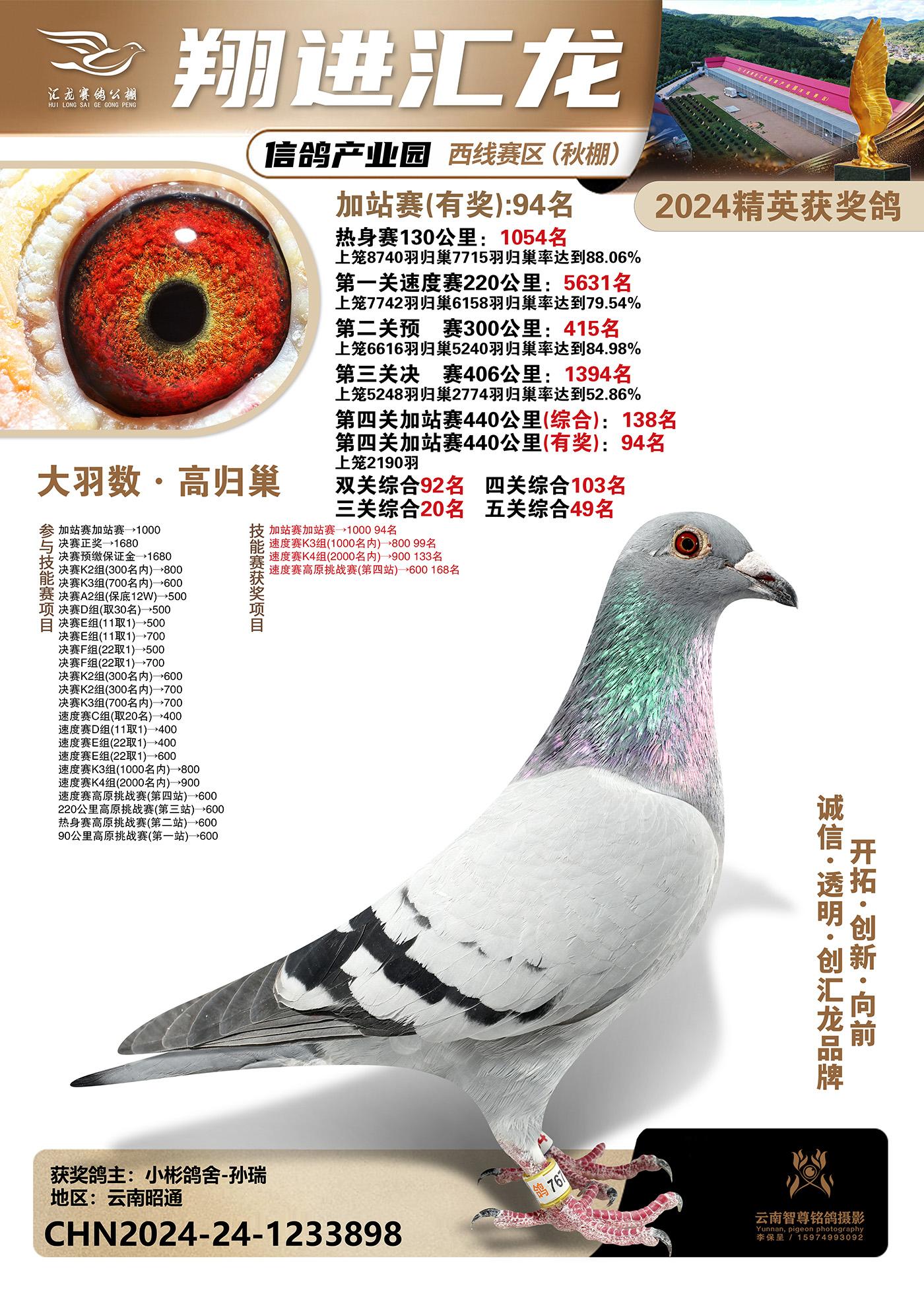 云南楚雄翔进汇龙西线赛区2024精英获奖鸽