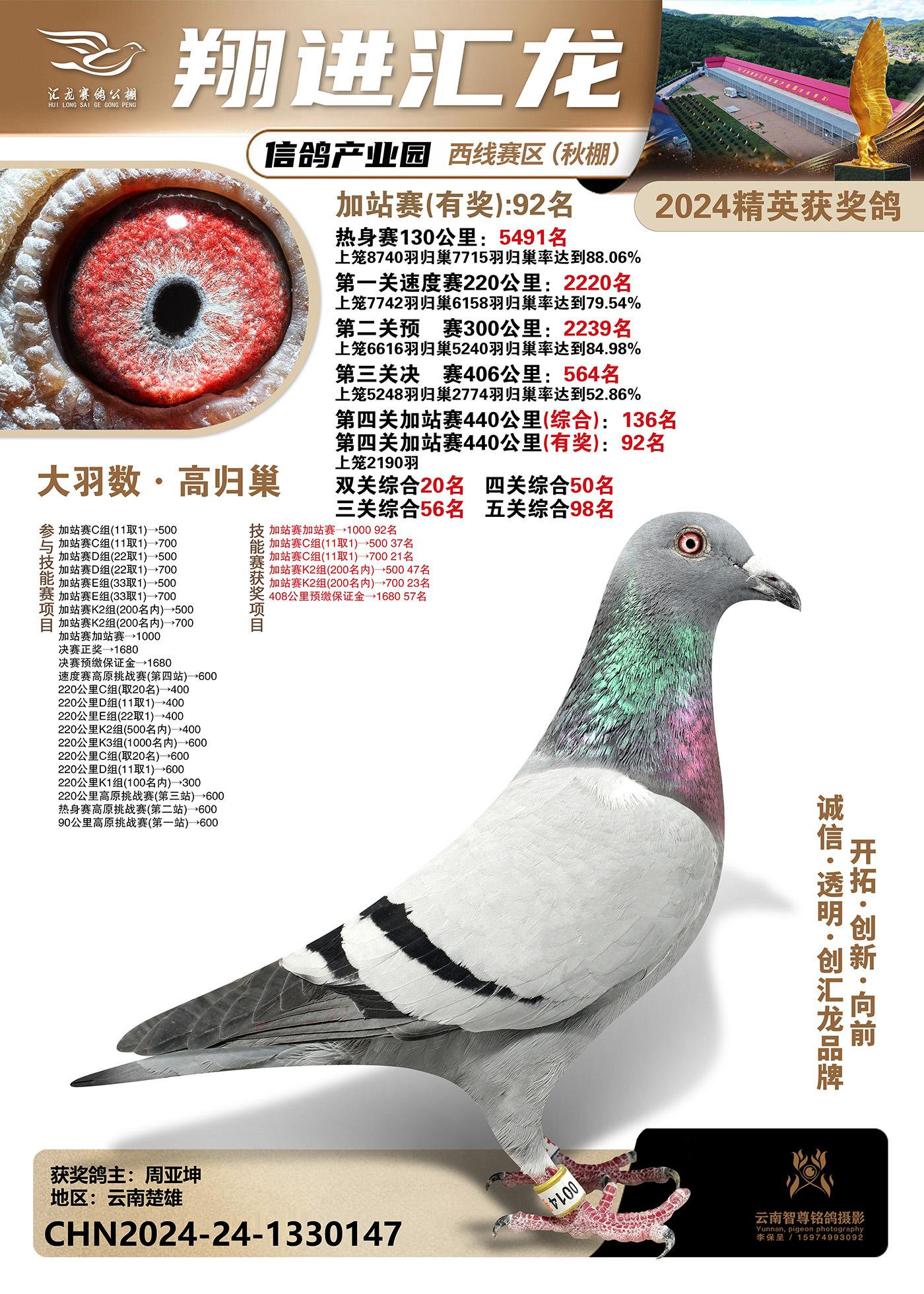 云南楚雄翔进汇龙西线赛区2024精英获奖鸽