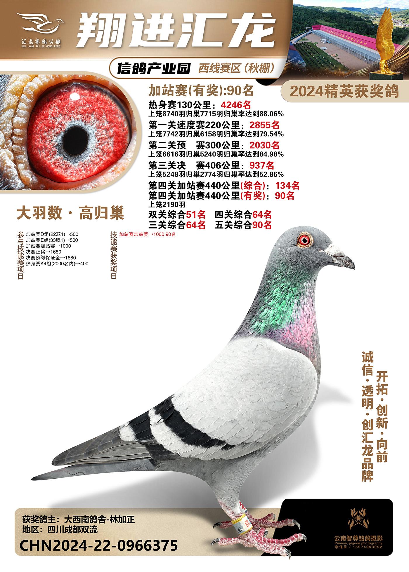 云南楚雄翔进汇龙西线赛区2024精英获奖鸽