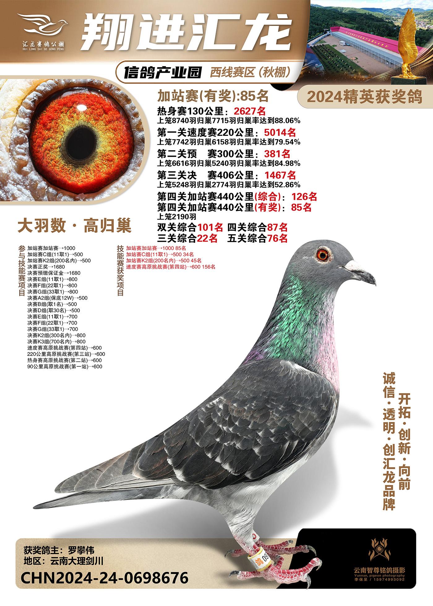 云南楚雄翔进汇龙西线赛区2024精英获奖鸽