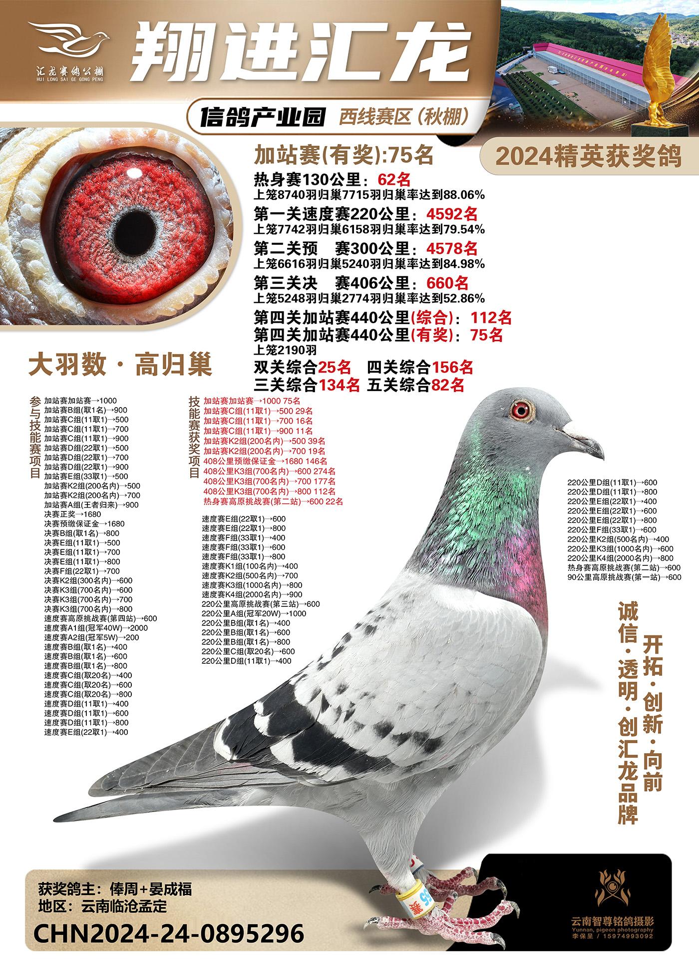 云南楚雄翔进汇龙西线赛区2024精英获奖鸽