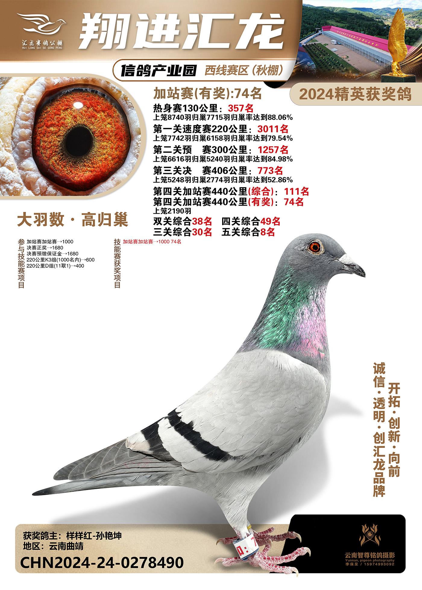 云南楚雄翔进汇龙西线赛区2024精英获奖鸽