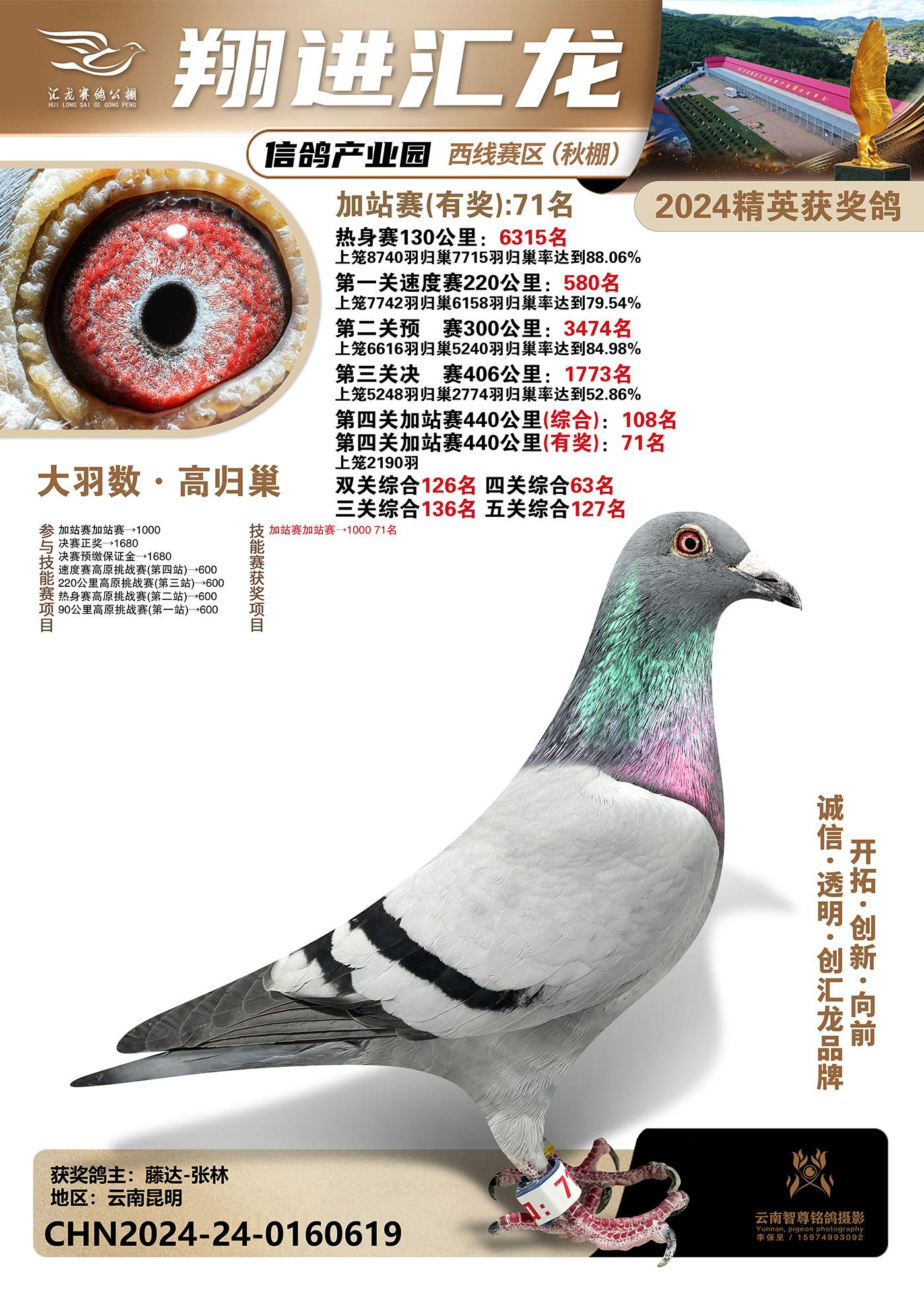 云南楚雄翔进汇龙西线赛区2024精英获奖鸽
