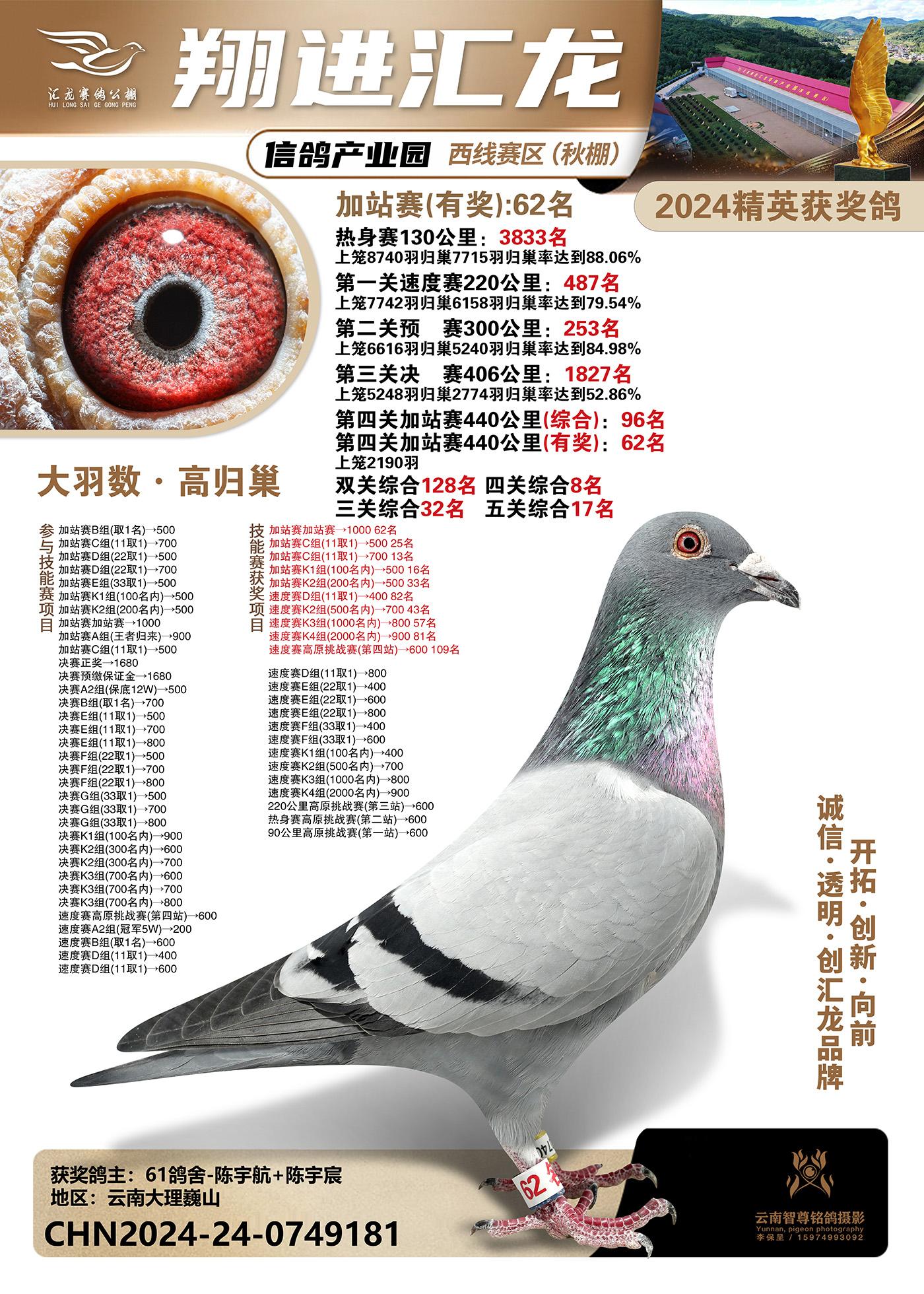 云南楚雄翔进汇龙西线赛区2024精英获奖鸽