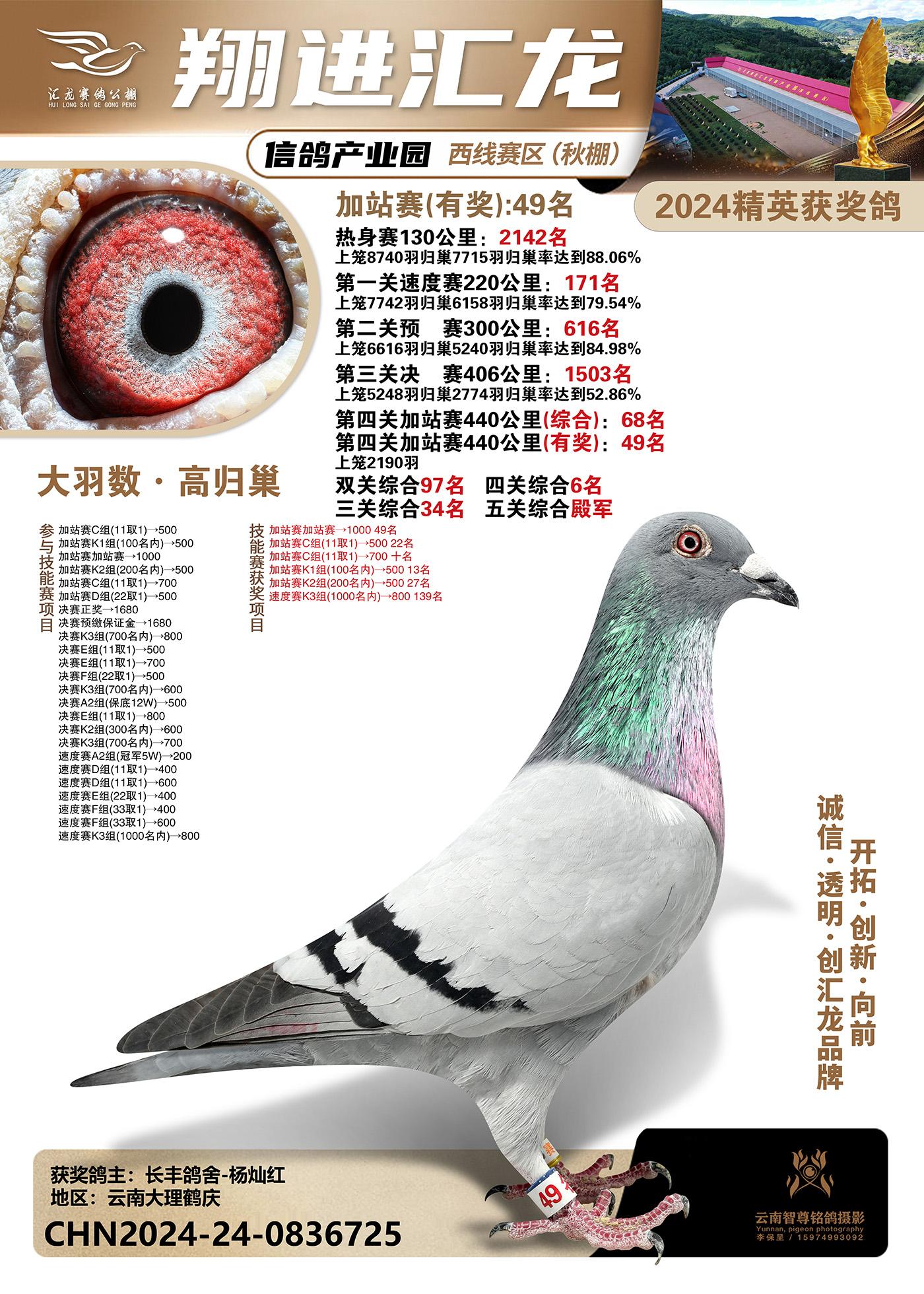 云南楚雄翔进汇龙西线赛区2024精英获奖鸽