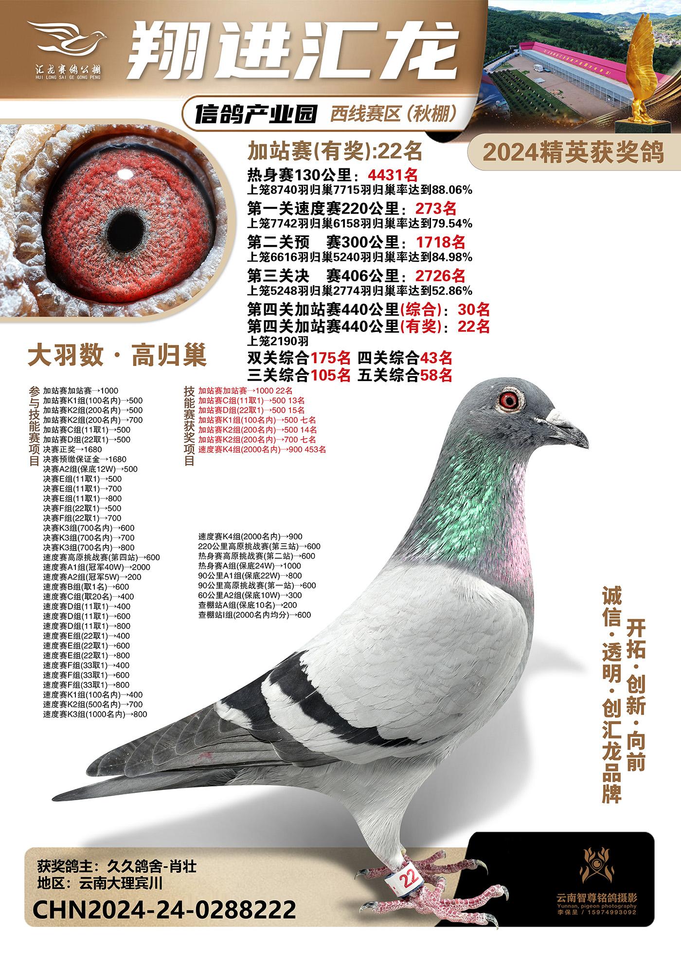 云南楚雄翔进汇龙西线赛区2024精英获奖鸽