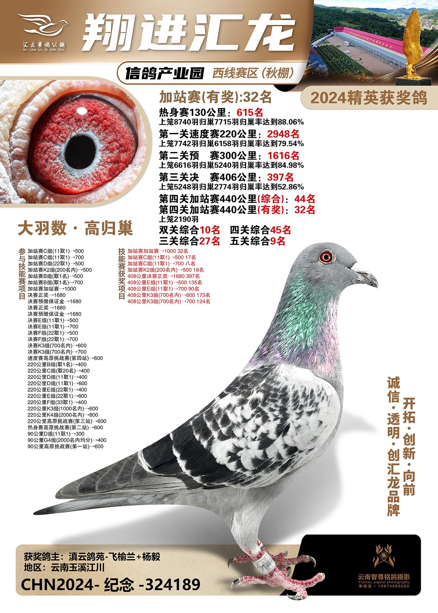 云南楚雄翔进汇龙西线赛区2024精英获奖鸽