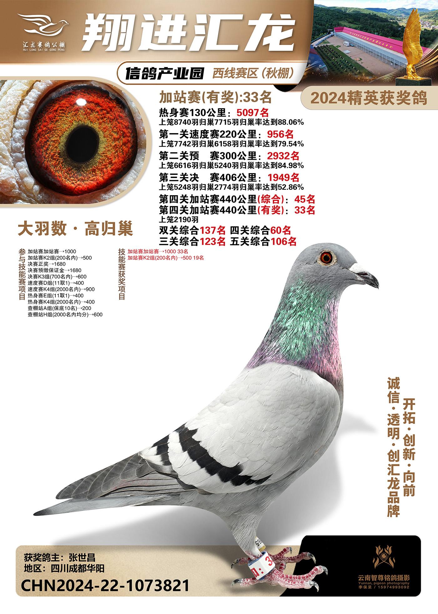 云南楚雄翔进汇龙西线赛区2024精英获奖鸽