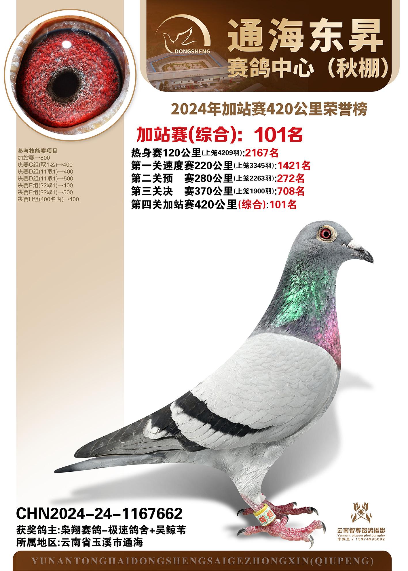 云南通海东昇赛鸽中心2024年加站赛420公里荣誉榜