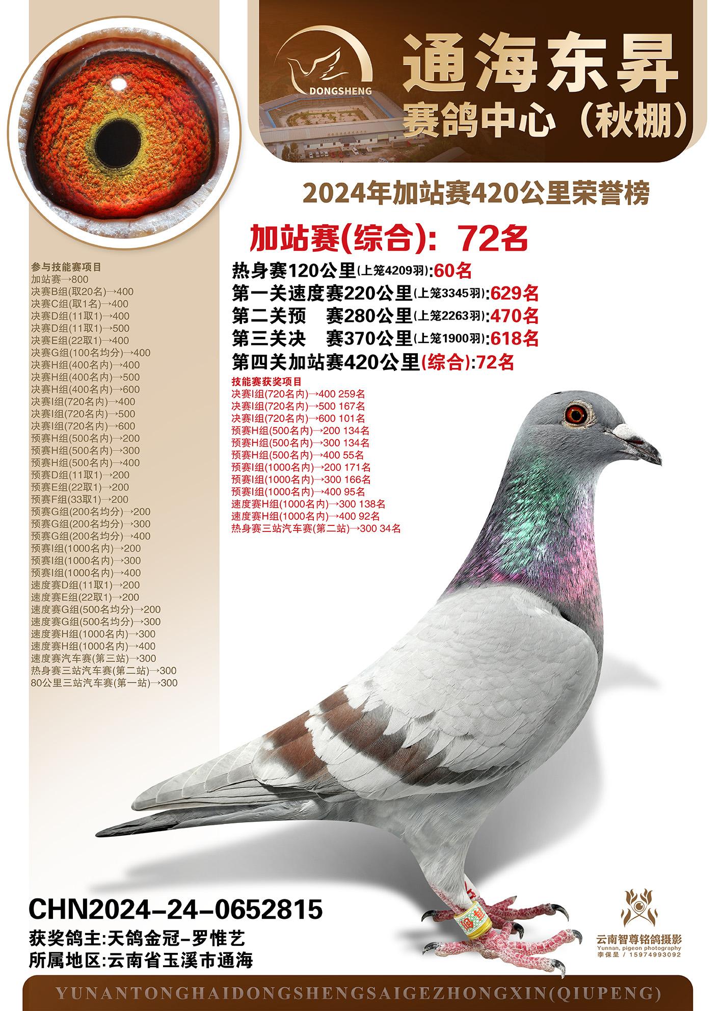 云南通海东昇赛鸽中心2024年加站赛420公里荣誉榜