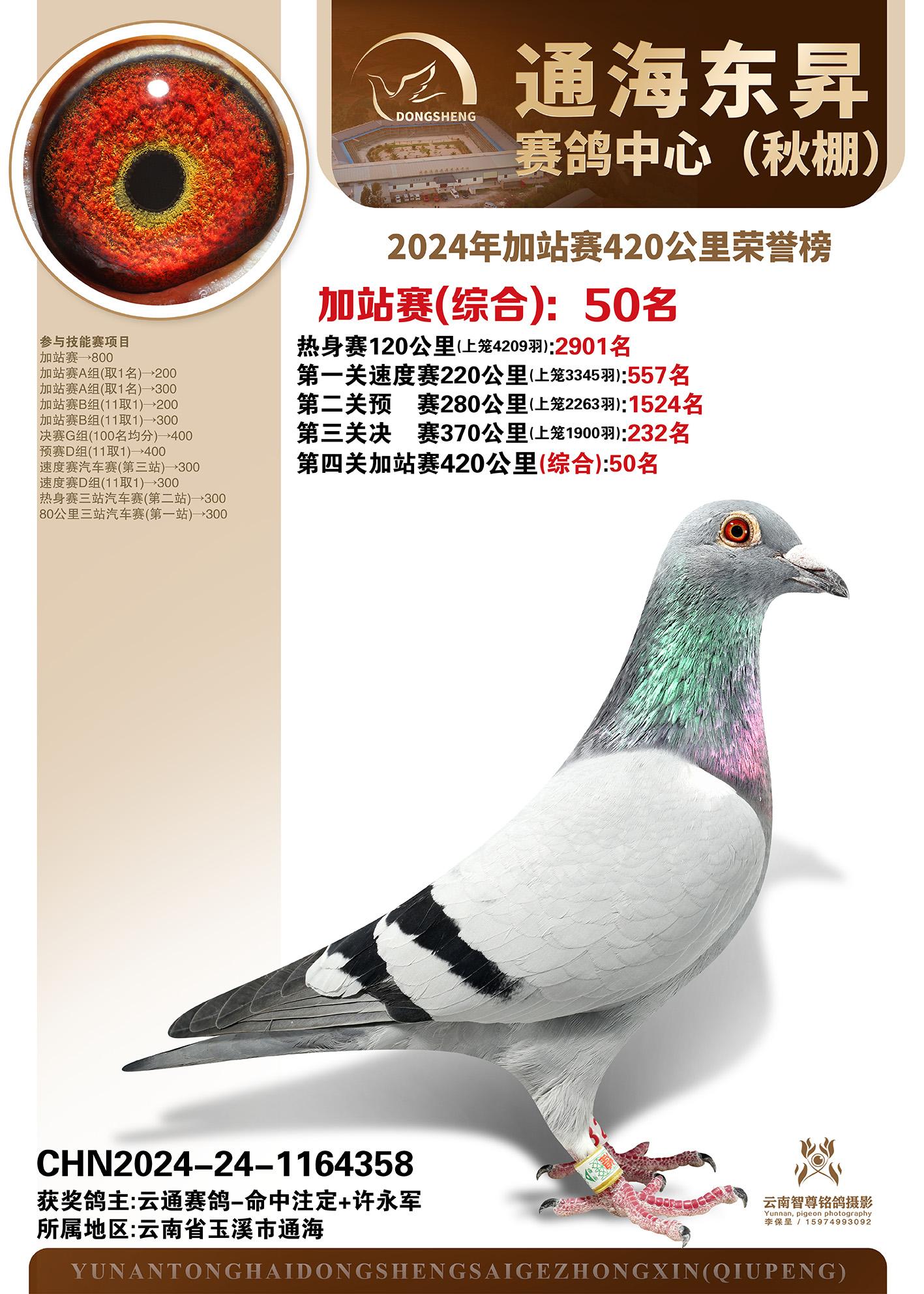 云南通海东昇赛鸽中心2024年加站赛420公里荣誉榜