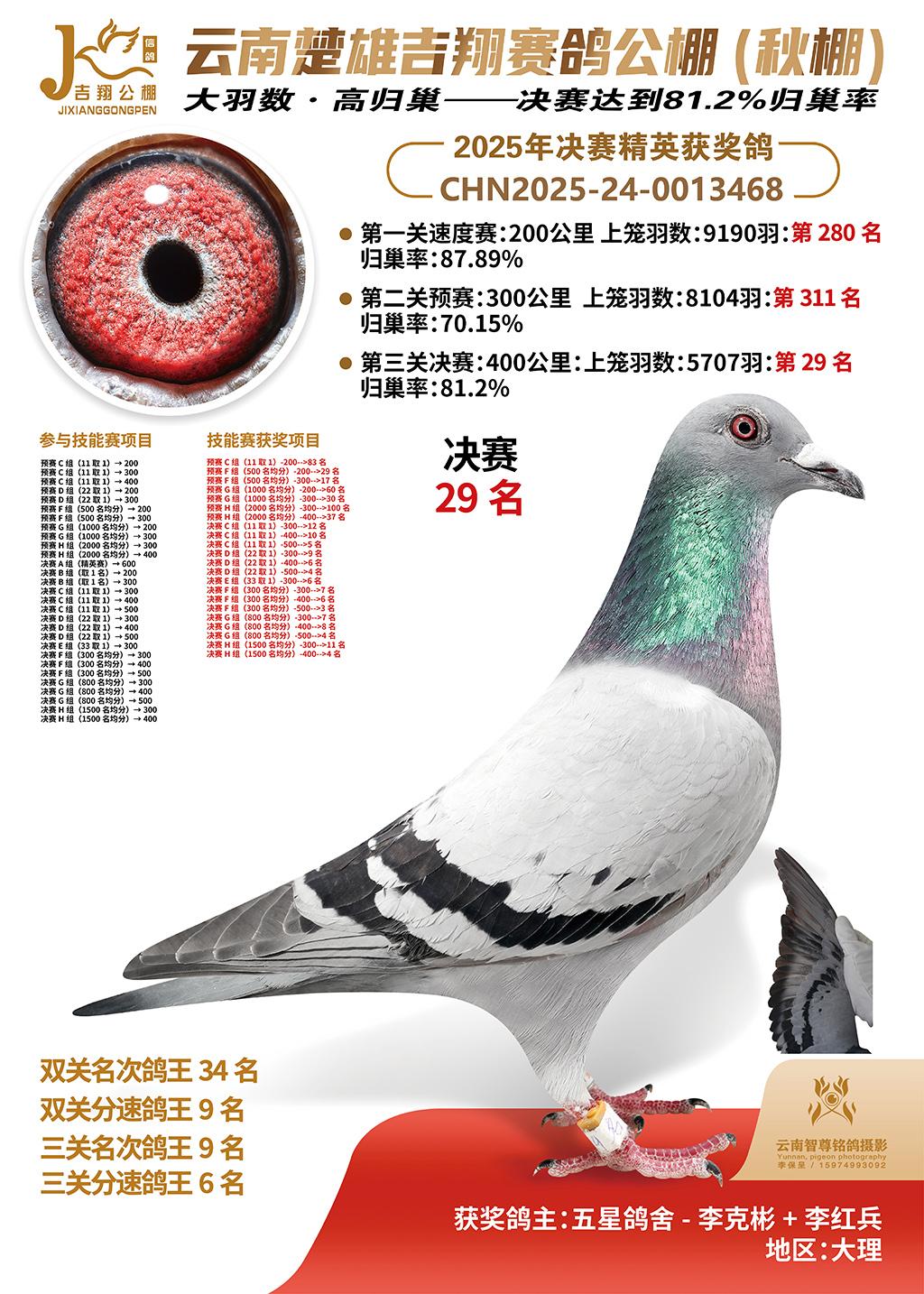 | 鸽主姓名 | 五星鸽舍-李克彬+李红兵 |