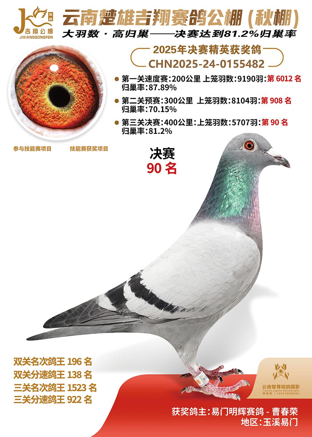 | 鸽主姓名 | 易门明辉赛鸽-曹春荣 |